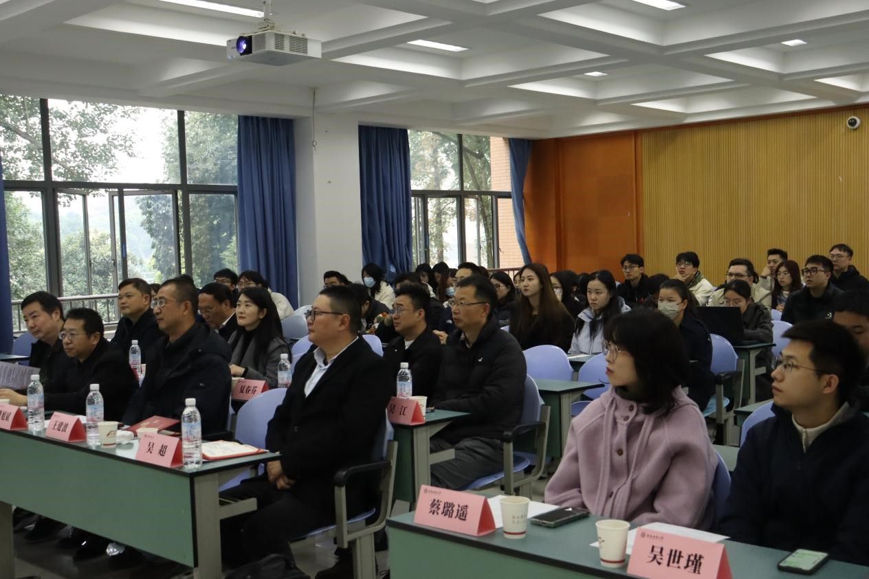 党委书记曹旭斌,院长鲁万波,党委副书记、纪委书记袁程炜,教师代表及2025级项目管理专硕全体学生共同参加。