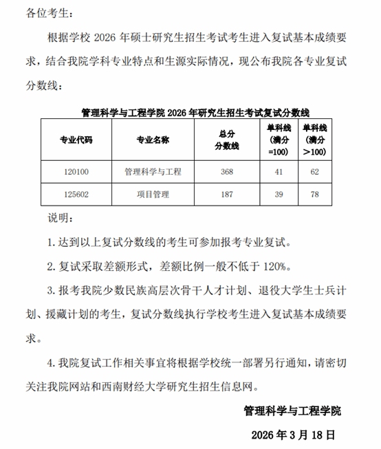 成人小说 关于公布2026年硕士研究生招生考试复试分数线的通知